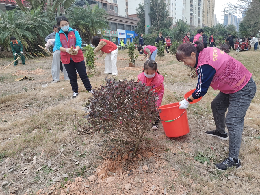 錦惠社區(qū)內(nèi)植樹現(xiàn)場火熱而有序。 惠州日報記者黃旭新 通訊員饒貴珊 攝