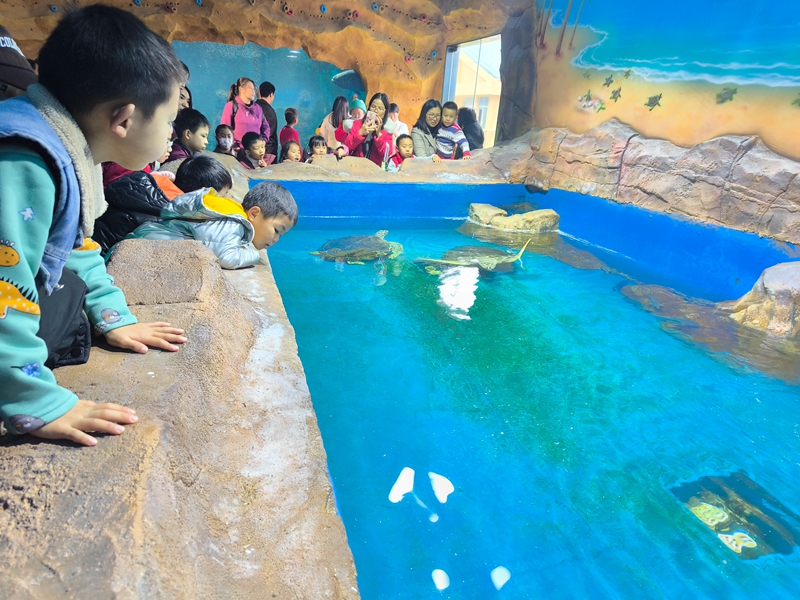 親子家庭參觀海洋科普館。 惠州日報(bào)記者曾靜妍 通訊員李愛芳 攝