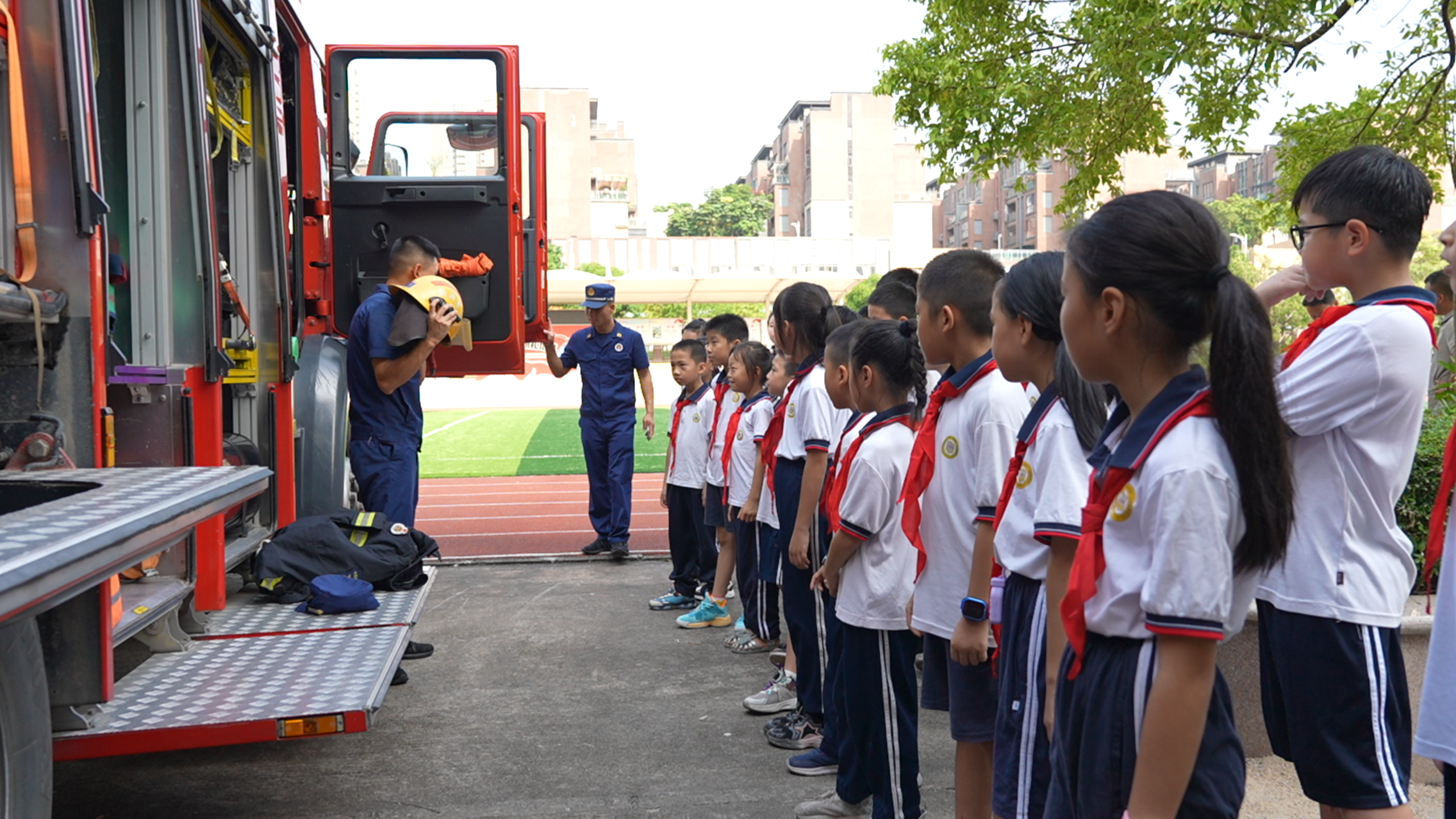澳頭第一小學(xué)聯(lián)合大亞灣荃灣消防救援站共同開(kāi)展消防應(yīng)急疏散演練。 惠州日?qǐng)?bào)記者黃旭新 攝