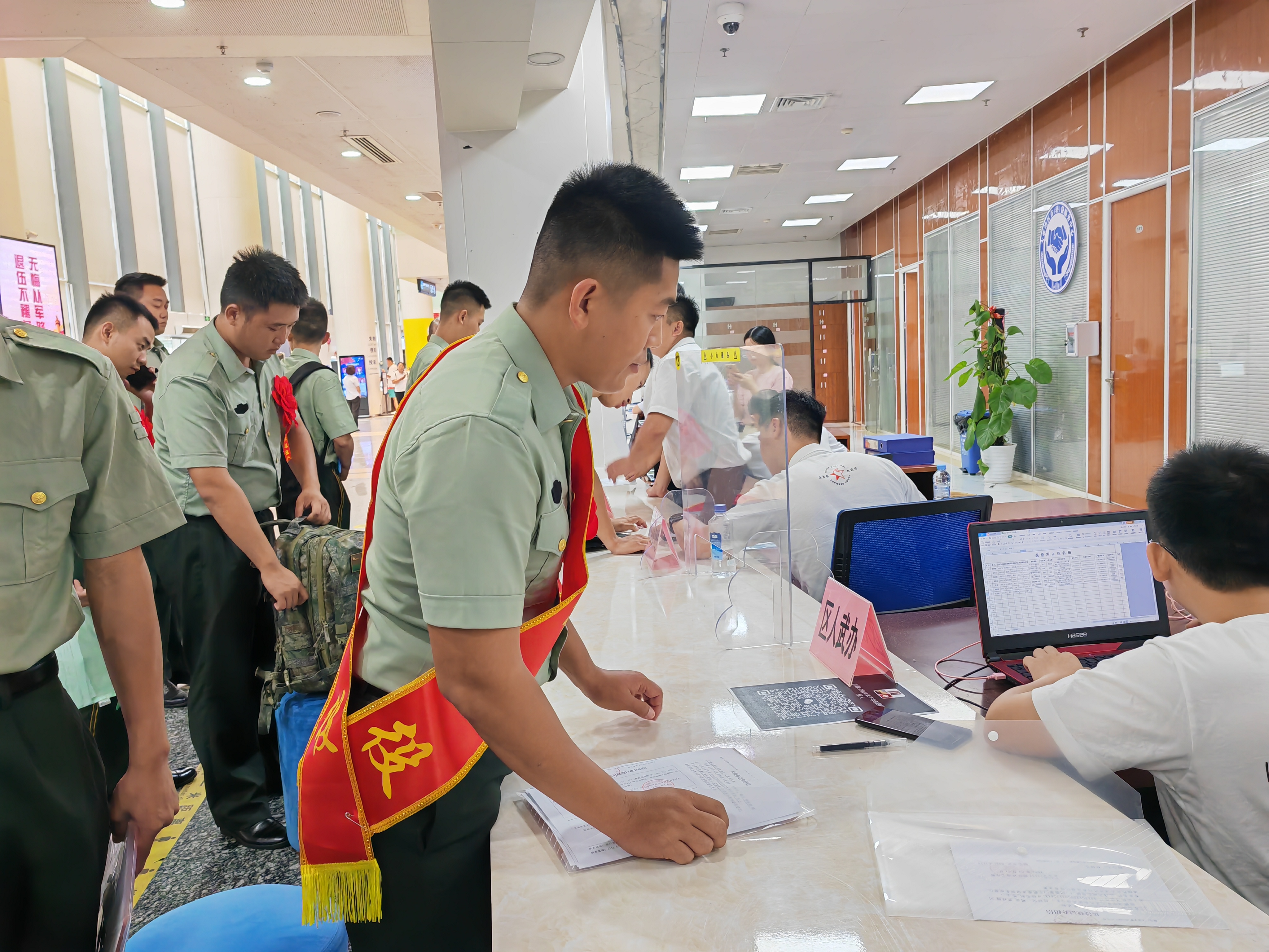 退役軍人返鄉(xiāng)享受“一站式”報(bào)到服務(wù)。惠州日?qǐng)?bào)記者匡湘鄂 攝