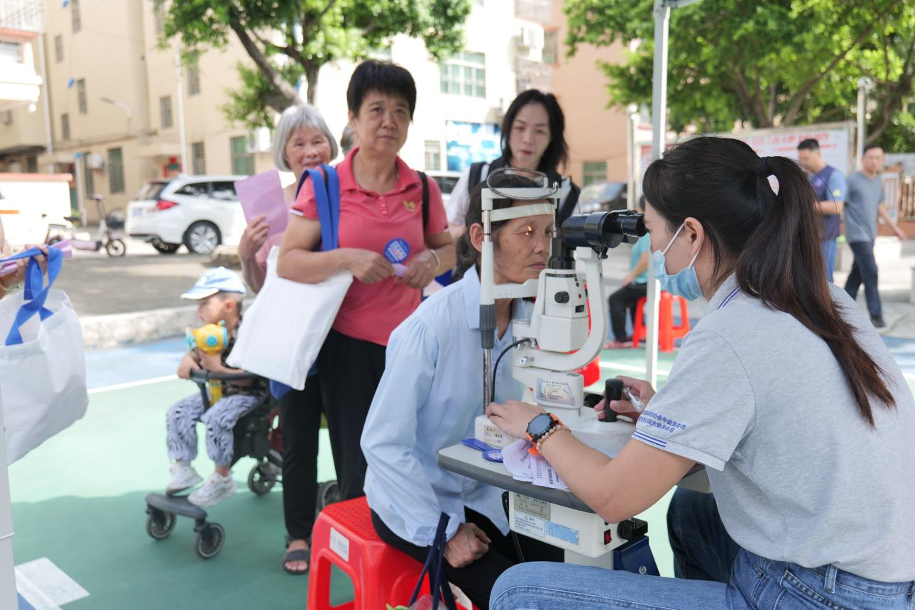 活動現(xiàn)場,工作人員為村民進行眼部檢查。