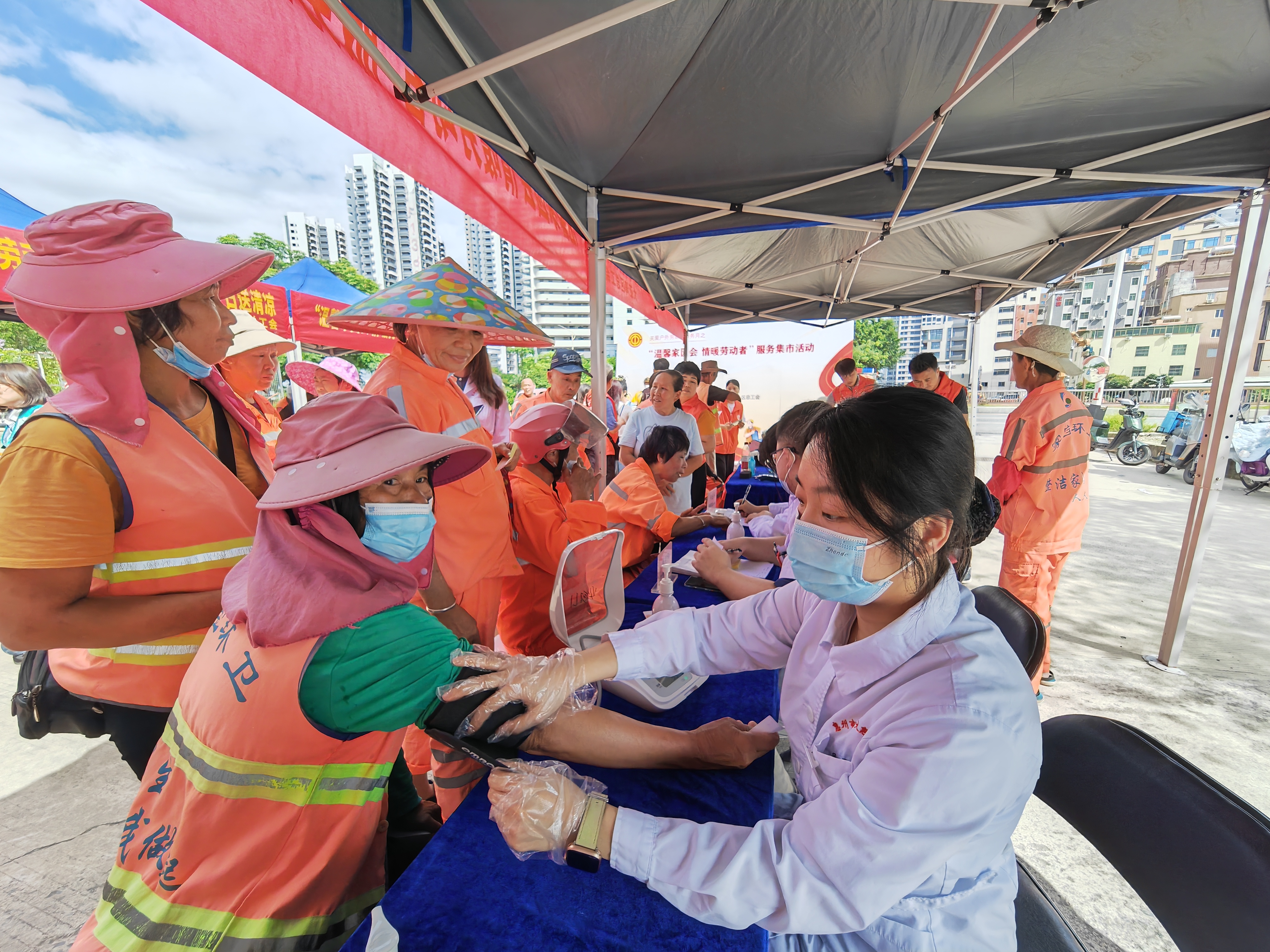 大亞灣區(qū)總工會關(guān)愛戶外勞動者,開展“溫馨家園會 情暖勞動者”服務(wù)集市活動。