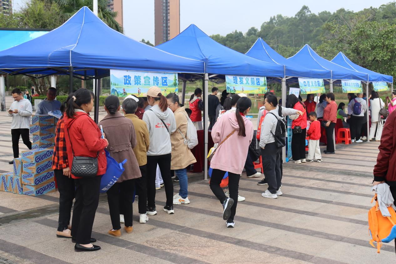 活動(dòng)現(xiàn)場設(shè)置有各種展區(qū):政策宣傳區(qū),由“回家”黨員向居民群眾宣傳禁毒反詐、環(huán)境保護(hù)、民生政策等;惠民服務(wù)區(qū),志愿者們?yōu)榫用裉峁┝x剪、口腔護(hù)理等服務(wù);慈善倡導(dǎo)區(qū)公示社區(qū)基金發(fā)展情況,倡導(dǎo)公眾積極參與慈善。