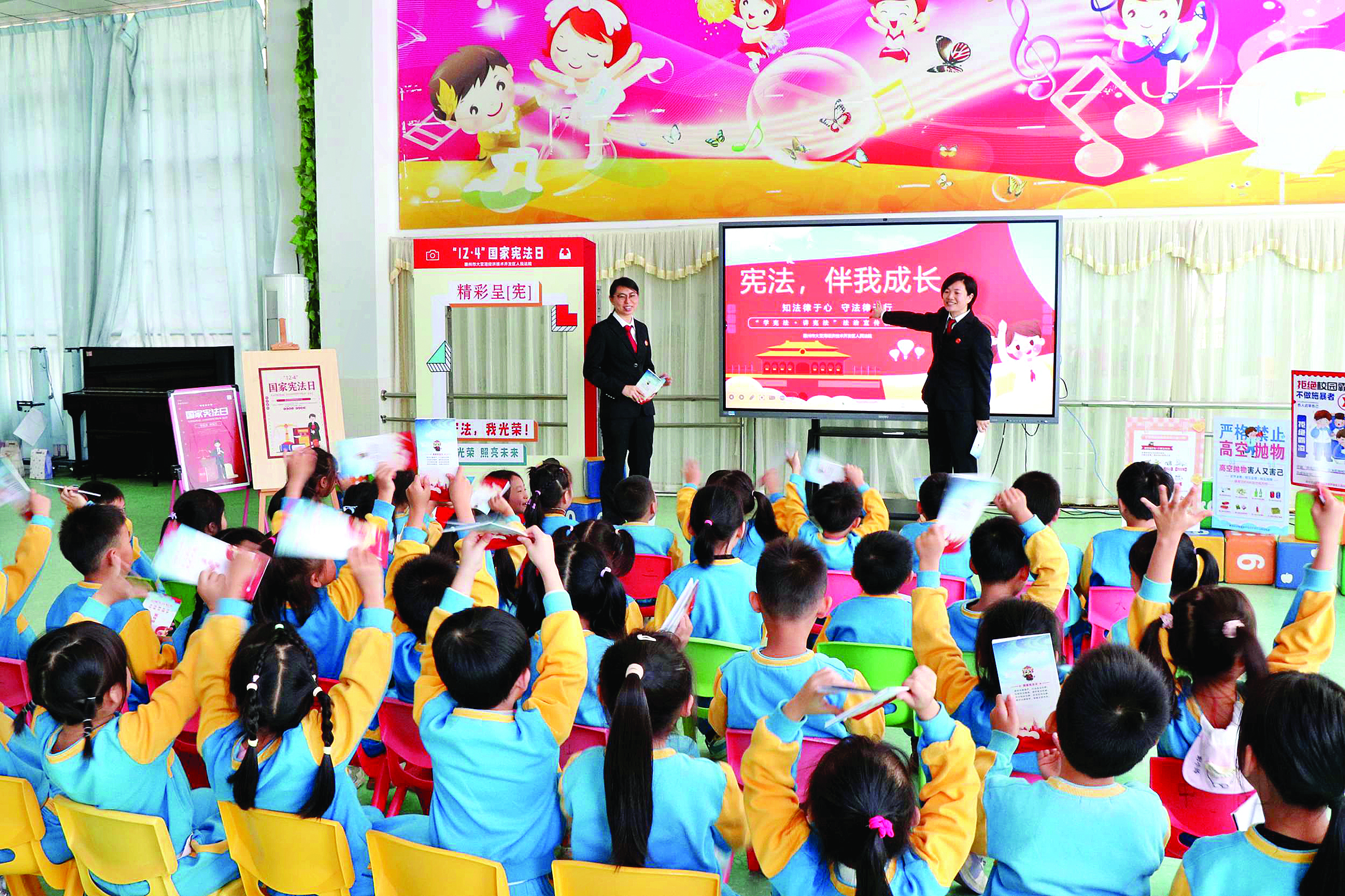 惠州日?qǐng)?bào)訊 (記者曾靜妍 通訊員章婷)當(dāng)法官走下審判臺(tái),走進(jìn)幼兒園,面對(duì)小萌娃上法治課,是一種怎樣的體驗(yàn)?今年12月4日是第11個(gè)國(guó)家憲法日。近日,大亞灣經(jīng)濟(jì)技術(shù)開(kāi)發(fā)區(qū)人民法院(以下簡(jiǎn)稱大亞灣法院)走進(jìn)大亞灣西區(qū)中心幼兒園,為40名幼兒上了一堂法治啟蒙課。