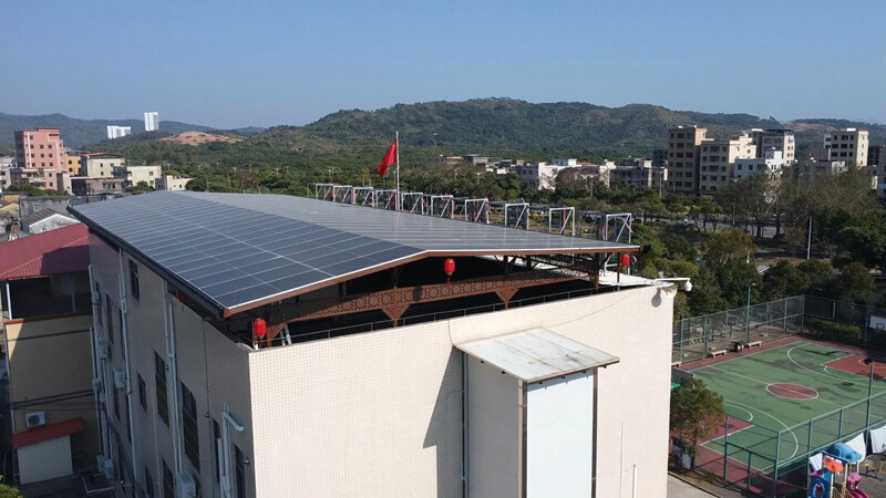 大亞灣霞涌上角村委會小披檐陽光棚光伏屋頂格外引人注目。