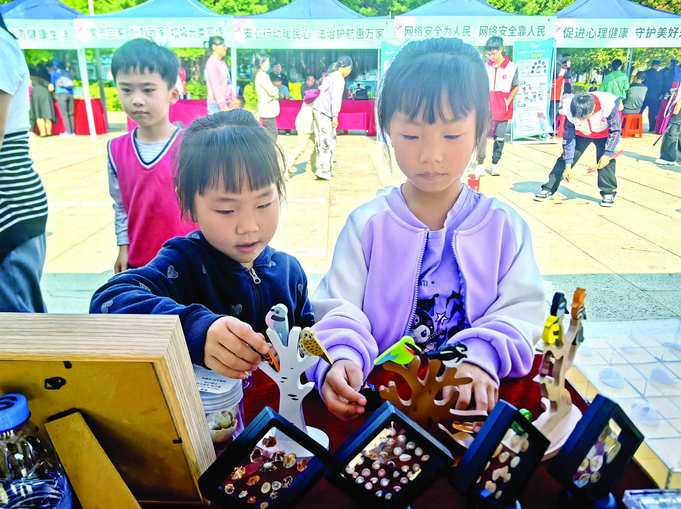 小朋友在集市上了解海洋生物標(biāo)本。通訊員鄒弋卉供圖