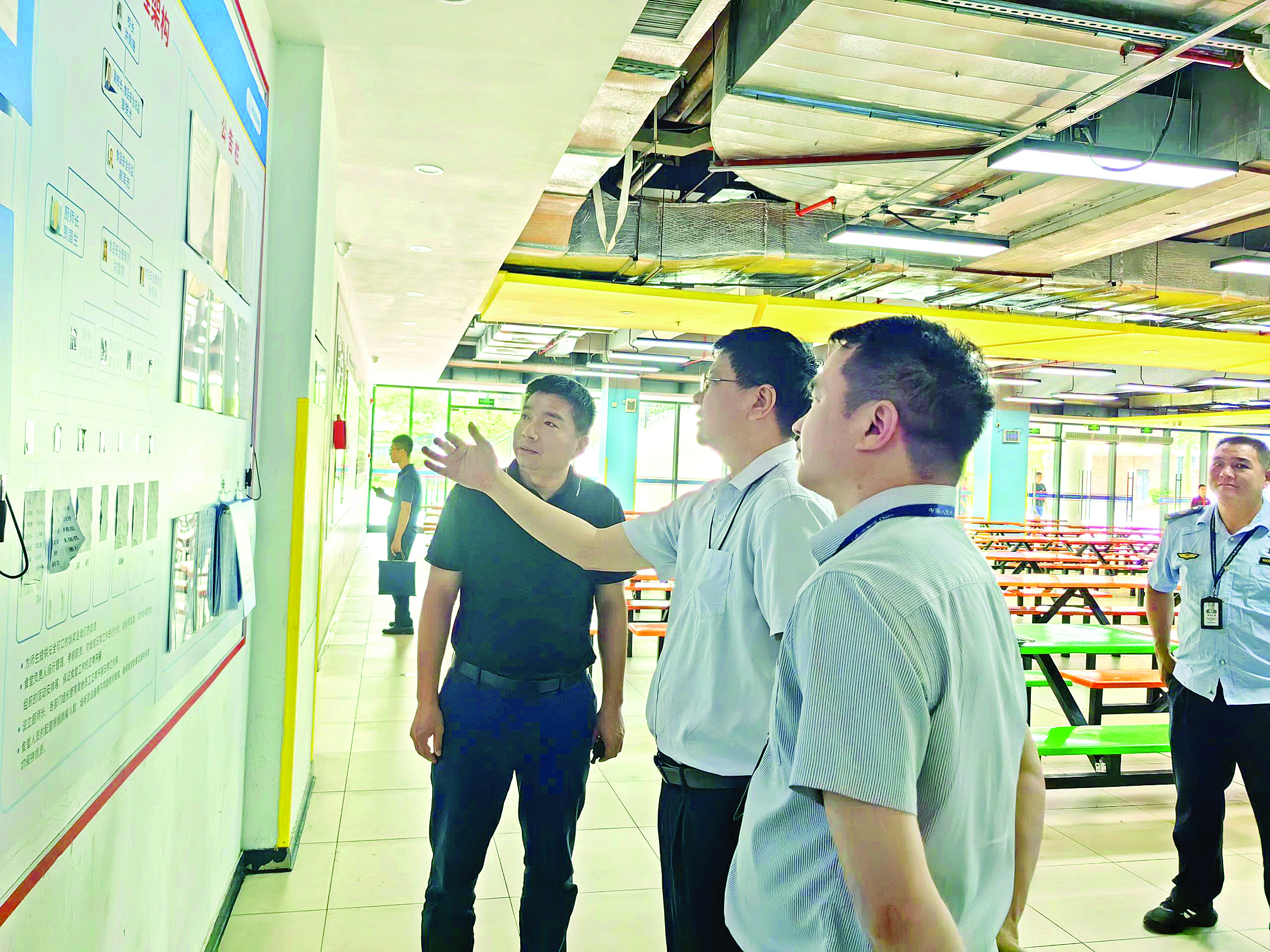 區(qū)市場監(jiān)管局工作人員對(duì)高考考點(diǎn)校園食堂開展食品安全檢查。