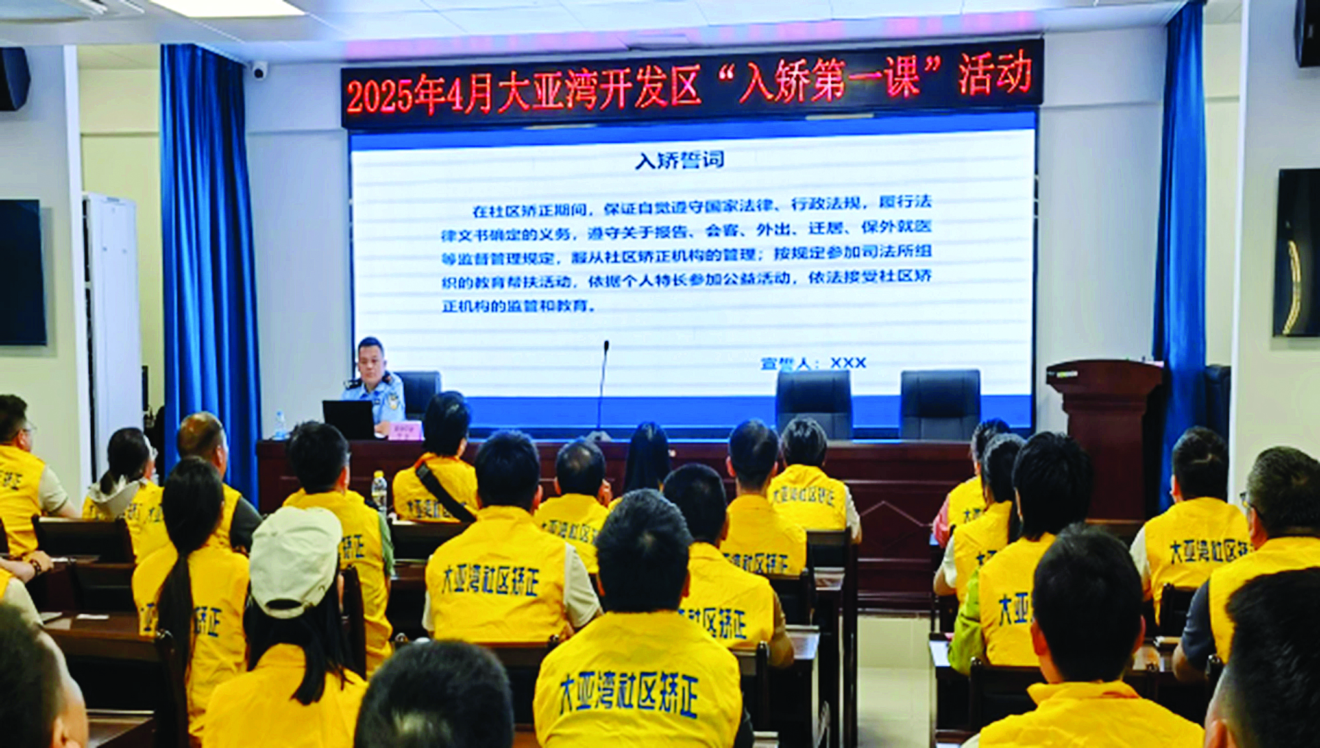 延伸管教警察創(chuàng)新入矯教育,嚴(yán)把入矯關(guān)口,開展“第一課”教育,實現(xiàn)新入矯對象100%覆蓋,幫助社區(qū)矯正對象深刻意識到社區(qū)矯正不是一種“負(fù)擔(dān)”,而是一次幫助其改過自新的“機會”,促使社區(qū)矯正對象自愿接受矯正教育。重點關(guān)注違規(guī)社區(qū)矯正對象,要求其重溫入矯教育,再次明確權(quán)利義務(wù)與違規(guī)后果,今年以來累計開展入矯教育6場,取得顯著成效。