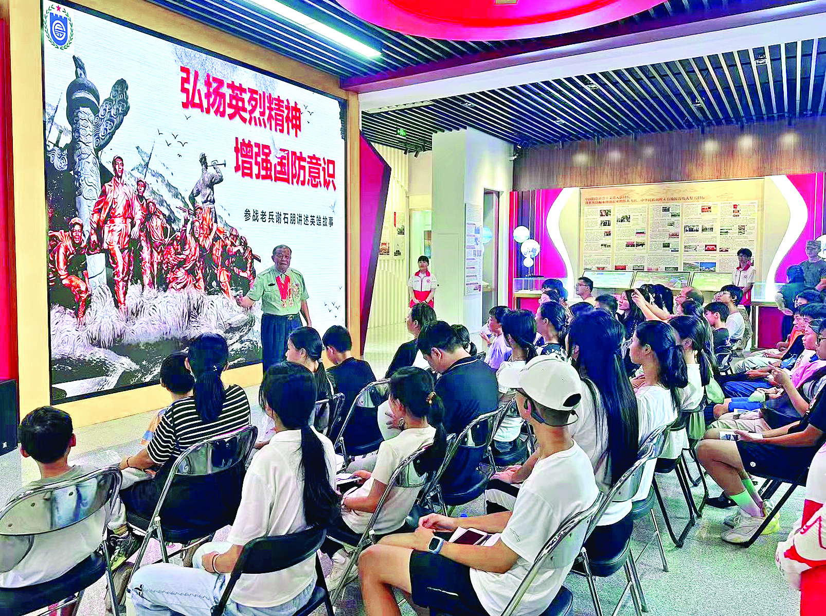 8月1日,大亞灣新時代文明實踐中心內(nèi)座無虛席,曾榮立一等功的老英雄謝石朋正動情講述當(dāng)年的戰(zhàn)斗經(jīng)歷。炮火轟鳴的歲月、生死與共的戰(zhàn)友情、堅定不移的理想信念,讓在場每一位聽眾無不動容。宣講結(jié)束后,學(xué)生代表向老英雄獻上鮮花,現(xiàn)場響起經(jīng)久不息的掌聲。
