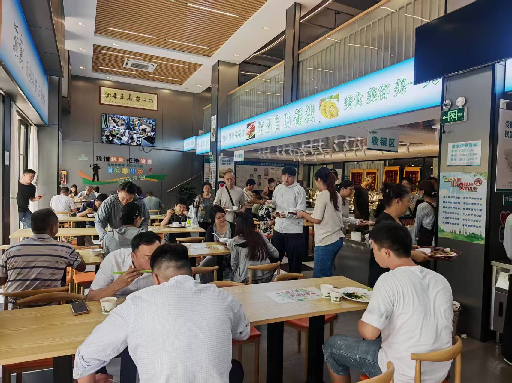 “錯過公司飯點就到這里吃,物美價廉。公司團建也會叫上同事來這里聚餐。”居住在龍光城、工作在深圳坑梓的周軍輝是西區(qū)街道龍光社區(qū)幸福食堂的常客,他對食堂的環(huán)境、價格和設施贊不絕口。