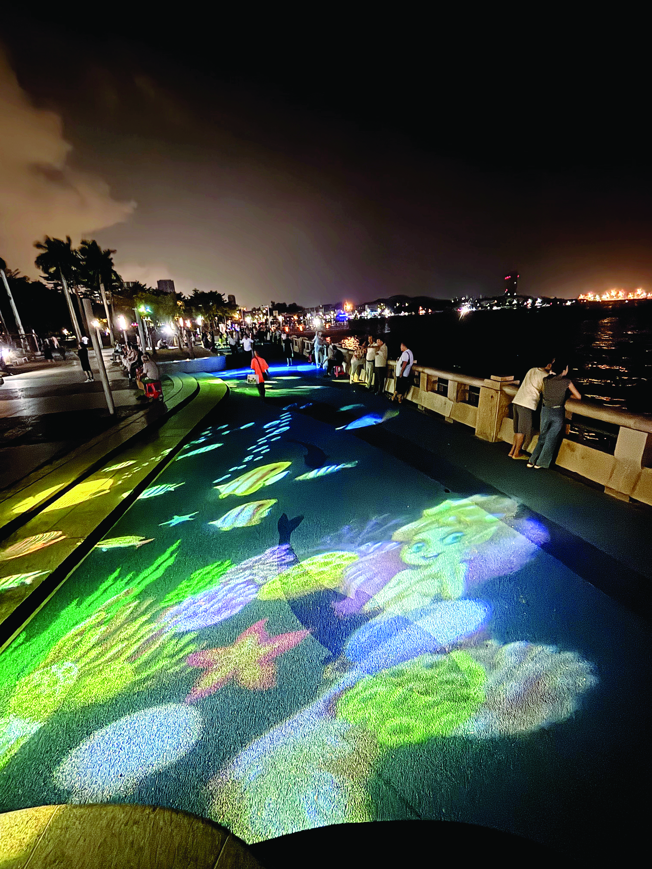 如今,漫步在公園的小徑上,仿佛踏上夢幻的海底探險之旅。嬌俏可愛的美人魚、色彩斑斕的熱帶魚、輕盈飄動的水草、波光粼粼的海浪……加上氛圍燈,營造出一個豐富多彩的海底世界。