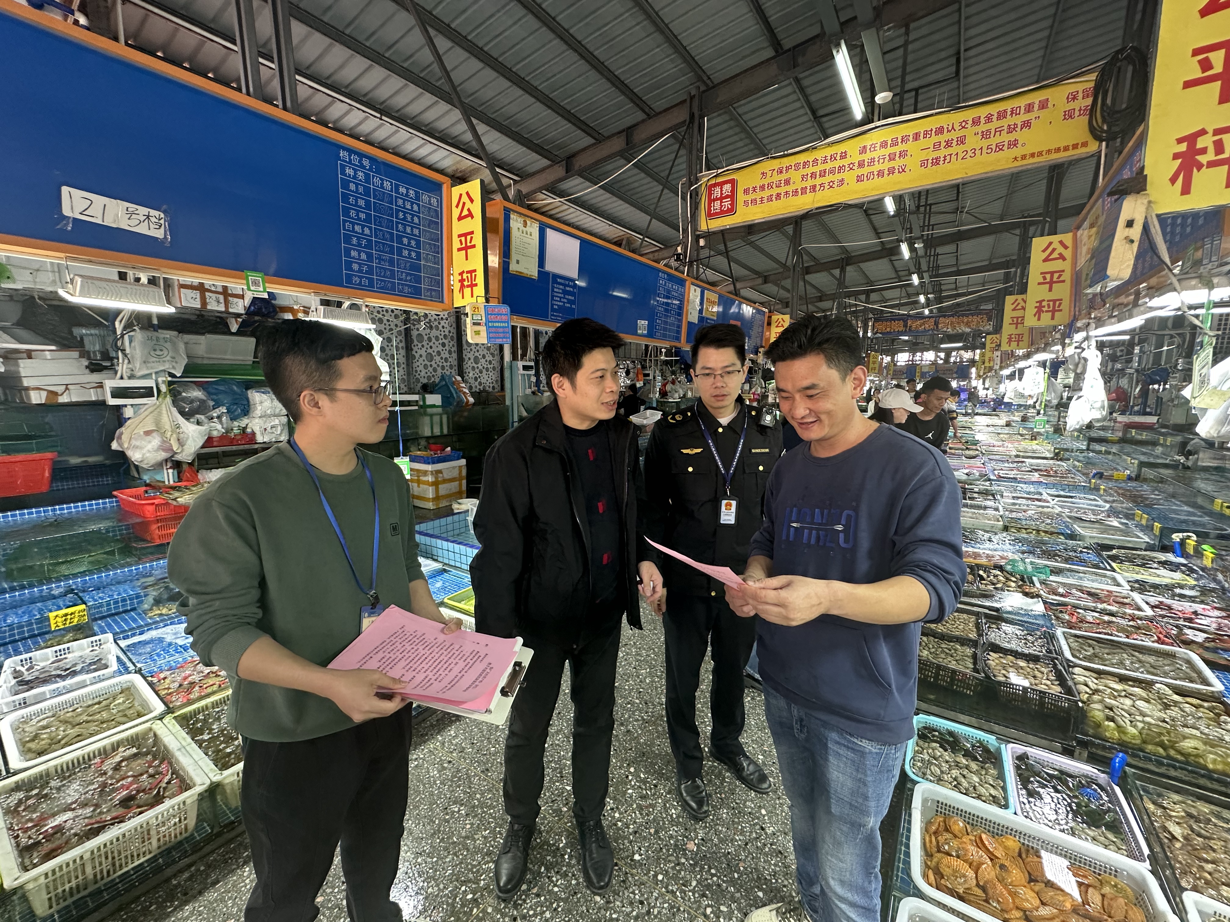 執(zhí)法人員檢查海鮮市場(chǎng)。惠州日?qǐng)?bào)記者匡湘鄂 攝