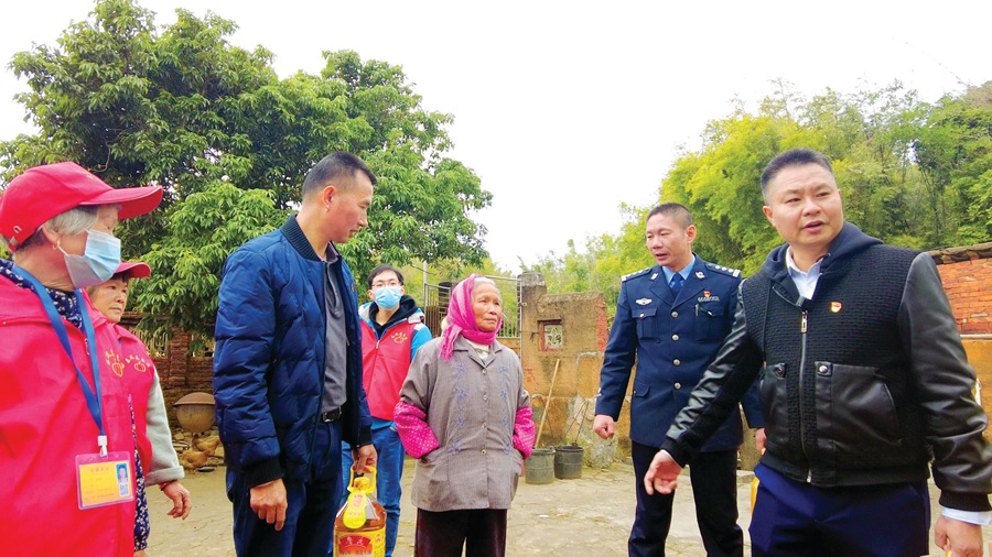 工作隊(duì)員入戶慰問,給老人送上新春祝福。