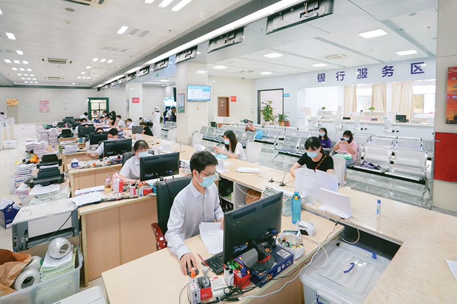 惠城區(qū)行政服務(wù)中心的辦事大廳,工作人員為市民辦理業(yè)務(wù)。惠州東江圖片社供圖