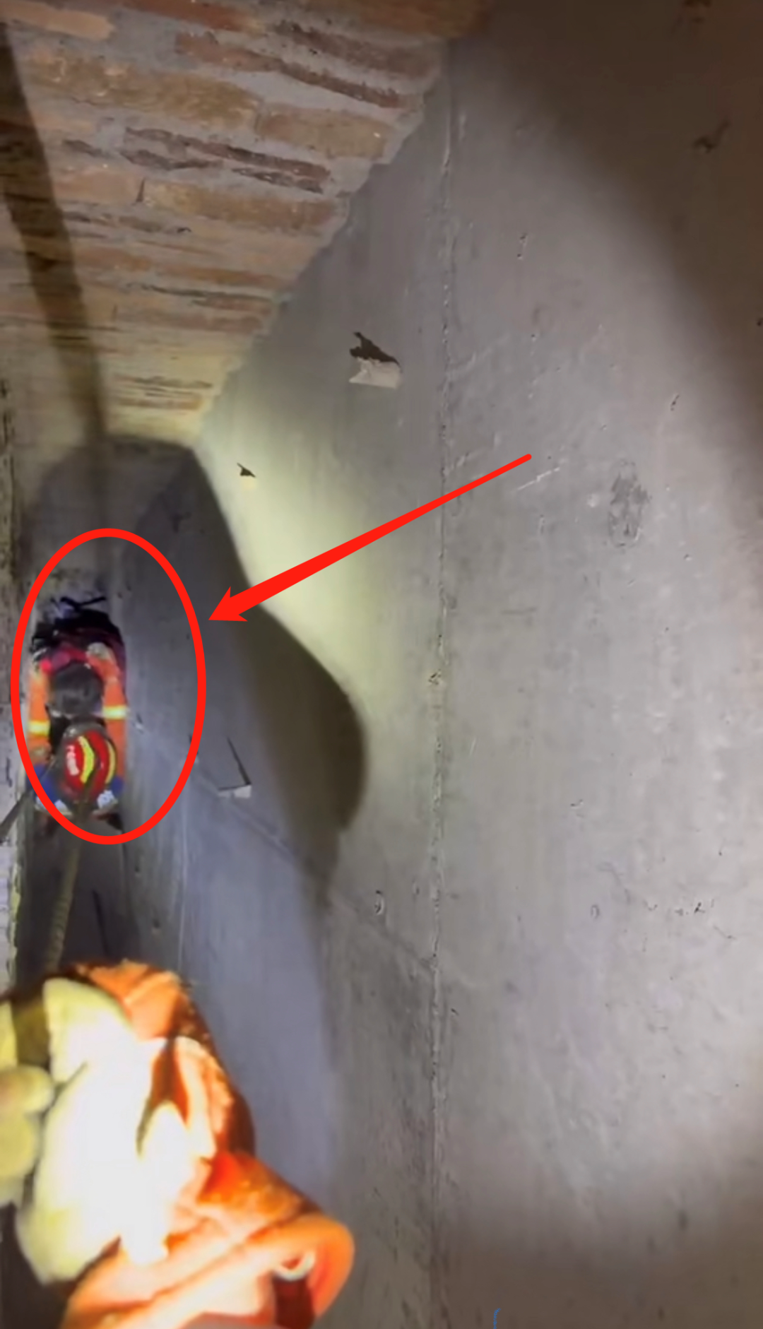 消防救援人員到達(dá)現(xiàn)場后,第一時(shí)間對現(xiàn)場進(jìn)行偵查,發(fā)現(xiàn)小朋友掉落在一個(gè)約40厘米寬,10米深的夾縫當(dāng)中,夾縫上方還有一塊水泥板,增加了救援難度,現(xiàn)場指揮員立即組織制作支點(diǎn),利用五點(diǎn)式吊帶進(jìn)行救援。