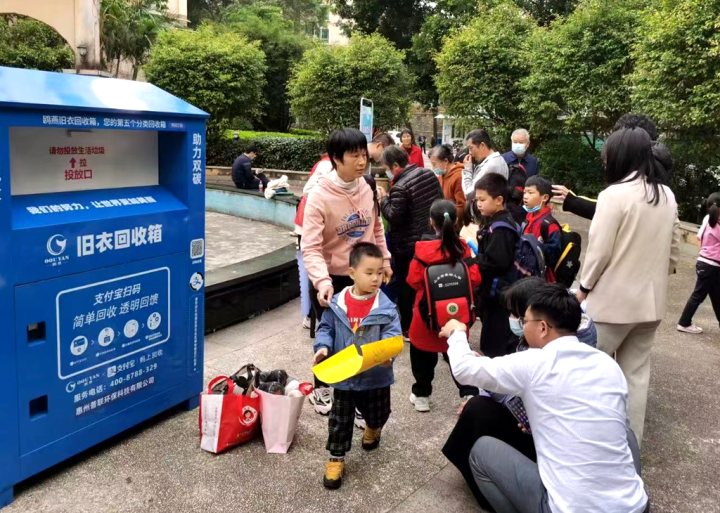 為方便居民投放廢舊衣物,惠城區(qū)小金口街道近日在轄區(qū)投放60多個智能舊衣回收箱,并舉辦垃圾分類進社區(qū)宣傳活動,加深居民對垃圾分類的認(rèn)識,提高居民參與度。