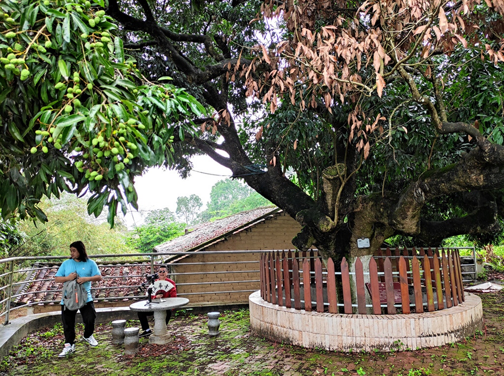 在歷代村民的呵護珍視下,這棵古荔枝樹至今仍枝繁葉茂,每年開花結(jié)果。因為這棵古樹的“坐鎮(zhèn)”,也常有游客到大陵崗尋幽訪古,叩問古荔枝故事,或樹下乘涼,遐想萬千。