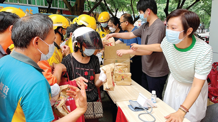 惠民驛站給新業(yè)態(tài)勞動(dòng)者派發(fā)愛心早餐。