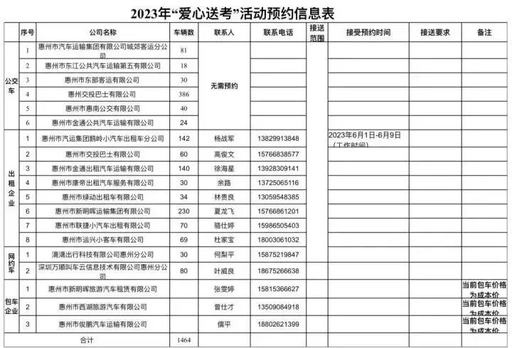 一年一度的高考即將來臨,為了讓廣大考生能夠安全、快捷、準時抵達考場,以良好的心理素質和沉著冷靜的狀態(tài)應對考試!惠州市交通運輸局惠城區(qū)分局同惠城區(qū)各交通運輸企業(yè)共同舉辦2023年“愛心送考”公益活動,全區(qū)近1500輛公交車、出租車(含網(wǎng)約車)將全力為考生保駕護航!