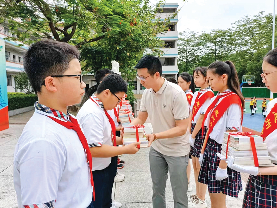 活動中為學(xué)生代表贈送正版書籍。 惠州日報(bào)記者彭紅霞 通訊員田家斌 攝