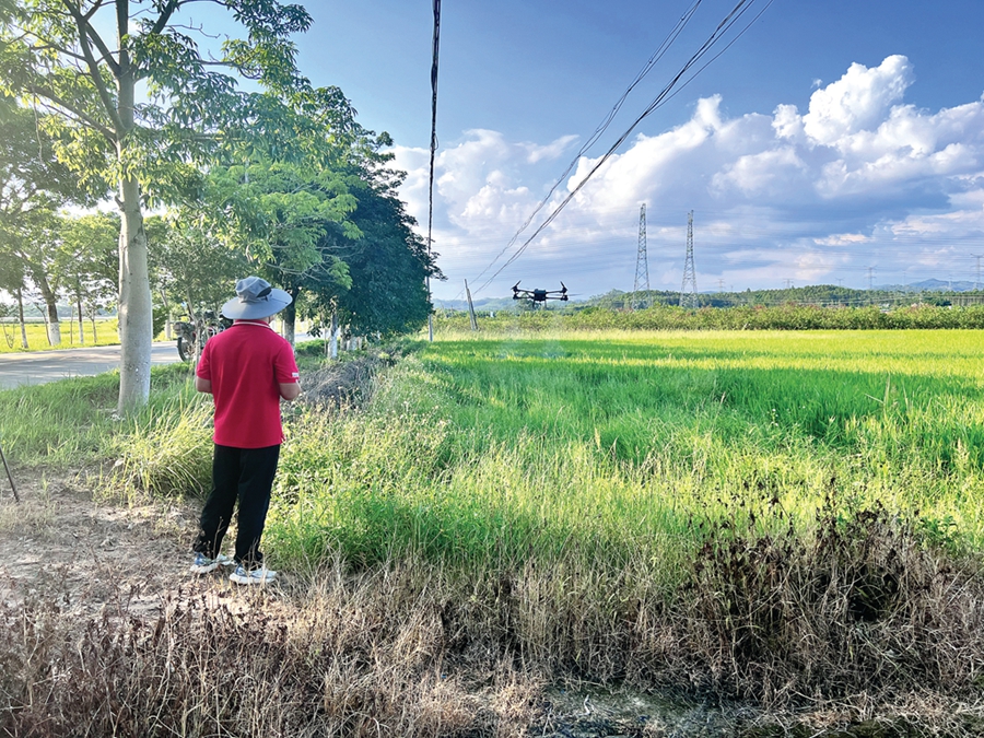 “我種了13畝水稻,手工打藥要一天,無人機(jī)半個多小時就完成了。”村民簡秀英為科技助農(nóng)的效果點(diǎn)贊。