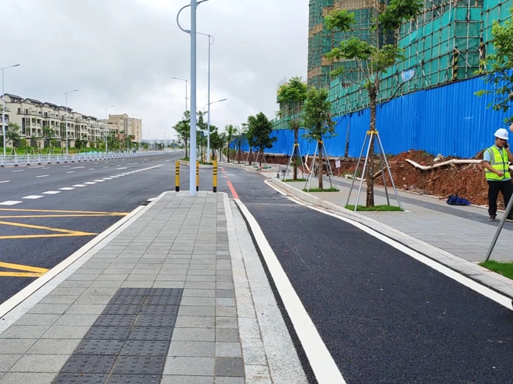 全線進(jìn)行了無障礙設(shè)施優(yōu)化設(shè)計。人行道方面也內(nèi)有玄機(jī)。人行道采用透水磚,底部設(shè)復(fù)合土工膜(防滲)堪稱“會喝水的人行道”,設(shè)有碎石盲溝、橫管等,能實現(xiàn)“小雨不見水、大雨不積水”,有效改善雨天行走濕滑和非機(jī)動車輪胎水漂打滑問題,降低事故發(fā)生率,保障通行安全。