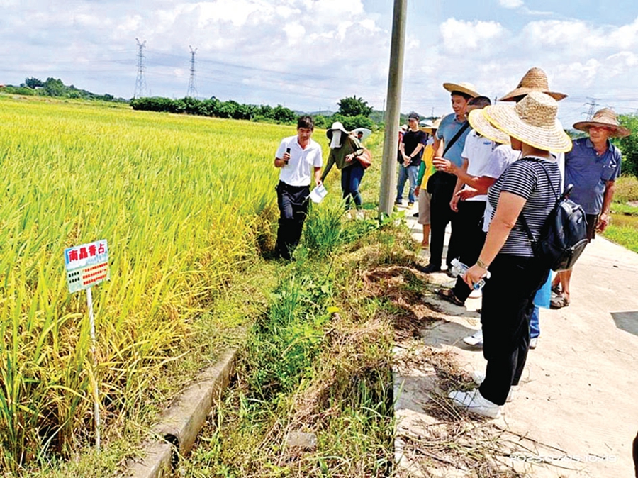 當看到品質(zhì)優(yōu)、抗性好、產(chǎn)量高的水稻品種——南晶香占,種植大戶簡秀英像挖到了寶,馬上向農(nóng)技人員索要品種名稱,表示自己有十幾畝地,下半年將大面積種植這個優(yōu)良品種。