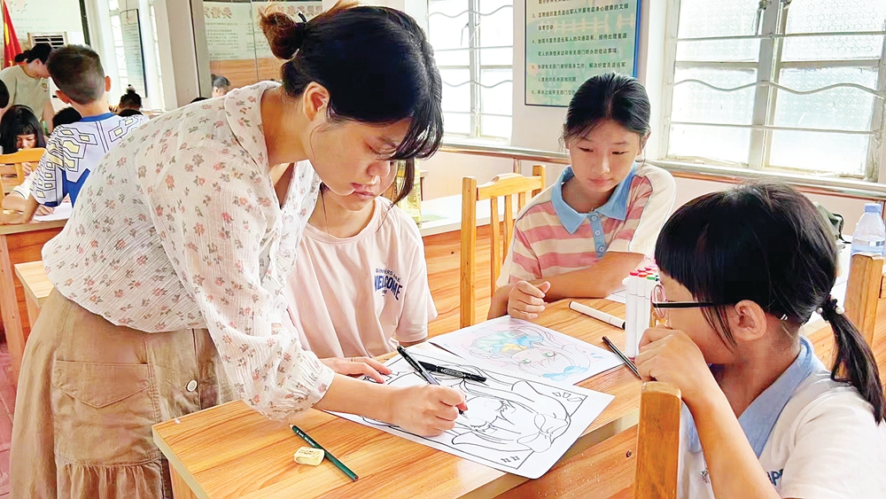 自暑假開始,以廣州商學(xué)院國際學(xué)院幸福實踐團(tuán)為代表的各大高校大學(xué)生志愿者們多批次來到蘆洲鎮(zhèn)開展社會實踐活動,他們活躍在小朋友們中間,用支教課堂為孩子們打開多彩世界的一扇窗。