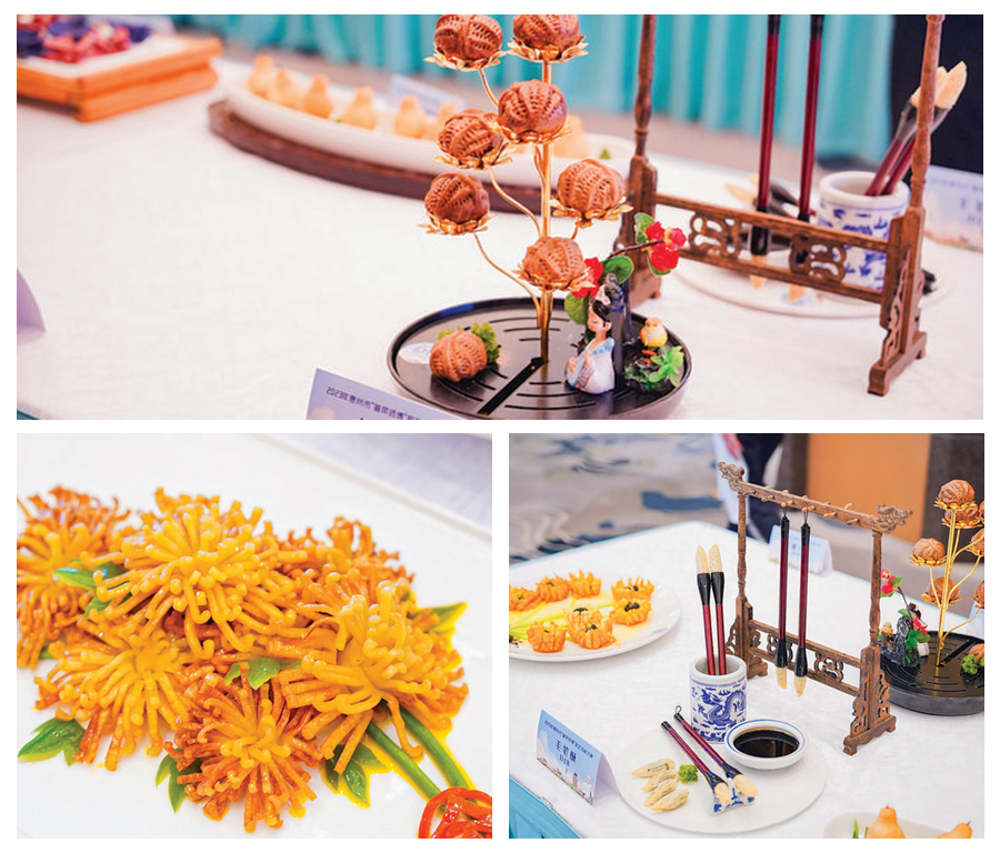 本次比賽共設(shè)中式烹調(diào)名廚組、中式面點(diǎn)名廚組、中式烹調(diào)新秀組、中式面點(diǎn)新秀組四個(gè)項(xiàng)目。其中,榕職共派出9名選手,分兩個(gè)小組參加。作為首次參賽的隊(duì)伍,榕職師生不僅創(chuàng)新制作技藝,做出對(duì)制作手法及油溫控制有著極高要求的創(chuàng)意面點(diǎn)《毛筆酥》,將顏值與美味巧妙融合,同時(shí)還創(chuàng)新融合菜色,運(yùn)用粵菜“制茸膠”的方法,將墨魚打成墨魚膠制作成花型,做成一道創(chuàng)新潮州菜《墨魚花拼石榴球》。經(jīng)過評(píng)審,最終該校學(xué)生梁嘉莉的中式面點(diǎn)《毛筆酥》《核桃包》獲新秀組一等獎(jiǎng)、教師曾浩威的菜式《菊韻》《墨魚花拼石榴球》獲得名廚組三等獎(jiǎng),榕職獲“最佳優(yōu)秀組織獎(jiǎng)”。