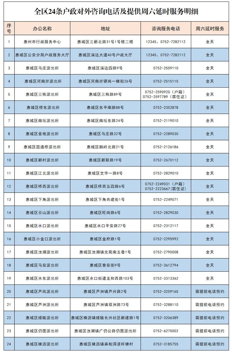最新最全!惠城區(qū)戶政窗口服務(wù)電話及地址公布(含周六延時服務(wù))