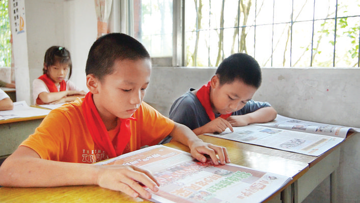 市蓬陵小學(xué)的學(xué)生閱讀《小惠同學(xué)》。