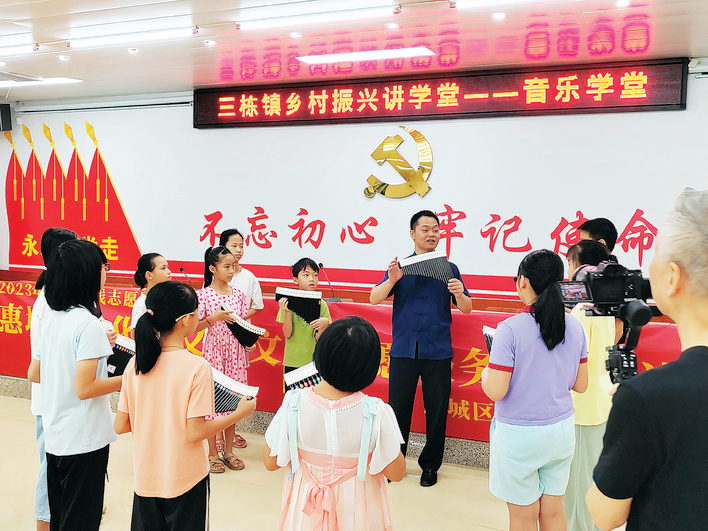 惠州市民族管弦樂隊協(xié)會的老師給孩子們開展培訓(xùn)。 惠州日報記者彭紅霞 通訊員黃美琳 攝