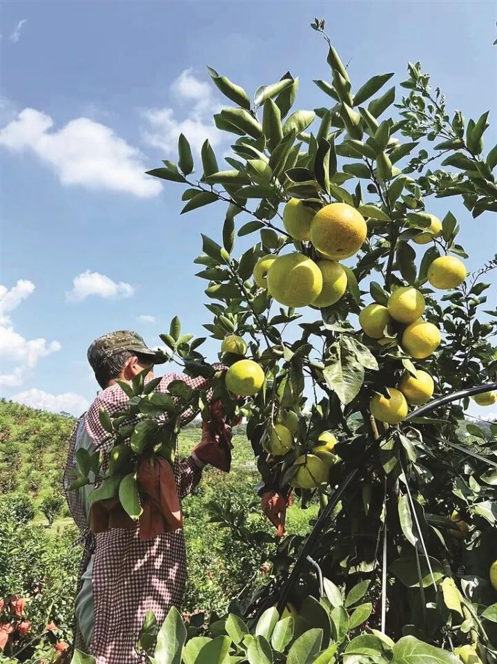 村民采摘葡萄柚。
