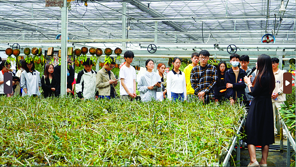 實(shí)踐觀摩的第一站,同學(xué)們首先前往綠湖花卉研學(xué)基地,在講解人員的帶領(lǐng)下參觀蘭花及鐵皮石斛的培植基地、花卉超市等,欣賞了不同品種的蘭花、格桑花,了解蘭花和鐵皮石斛產(chǎn)業(yè)發(fā)展現(xiàn)狀。