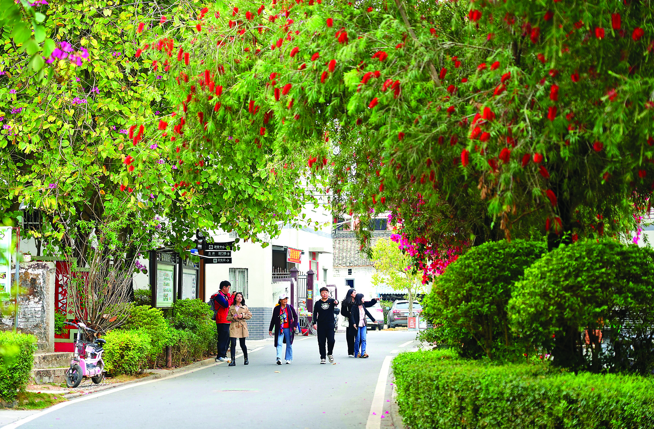 墨園村保留有大量的古建筑。春天里,村內(nèi)花開遍野、春意盎然,與古建筑相映成趣。記者到訪時(shí),村內(nèi)迎來一撥又一撥游客,大家都沉浸在美景中,忙著賞春色、品古韻。