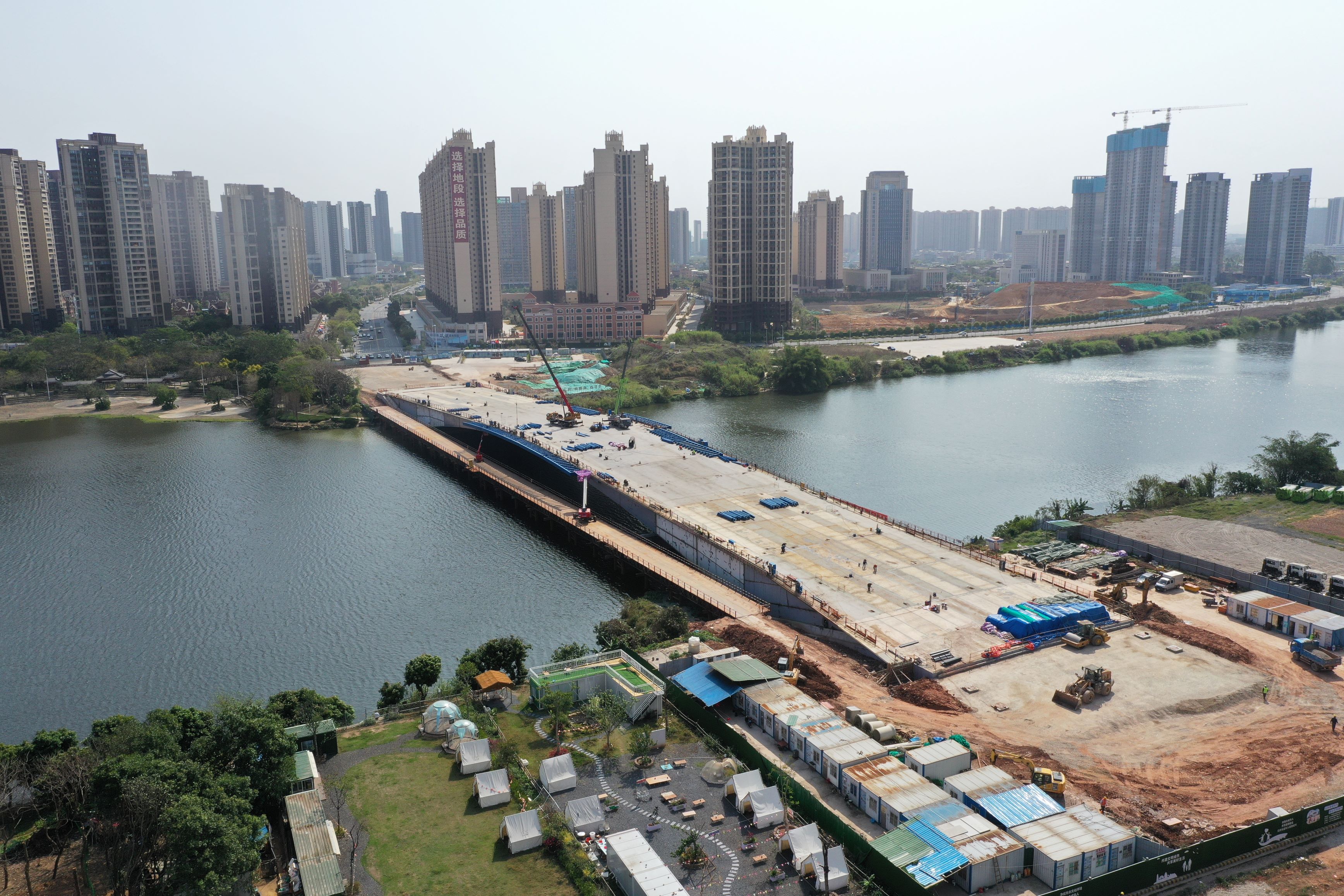 正在建設中的金山湖片區(qū)一號橋。