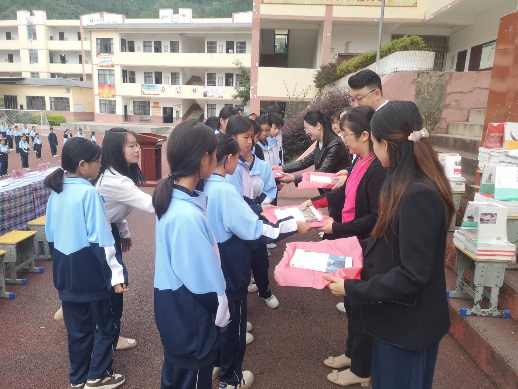 惠州市第七中學(xué)向冊(cè)亨縣秧壩民族中學(xué)捐贈(zèng)圖書。 文/圖 惠州日?qǐng)?bào)記者鄧惠婷 特約通訊員周文媚