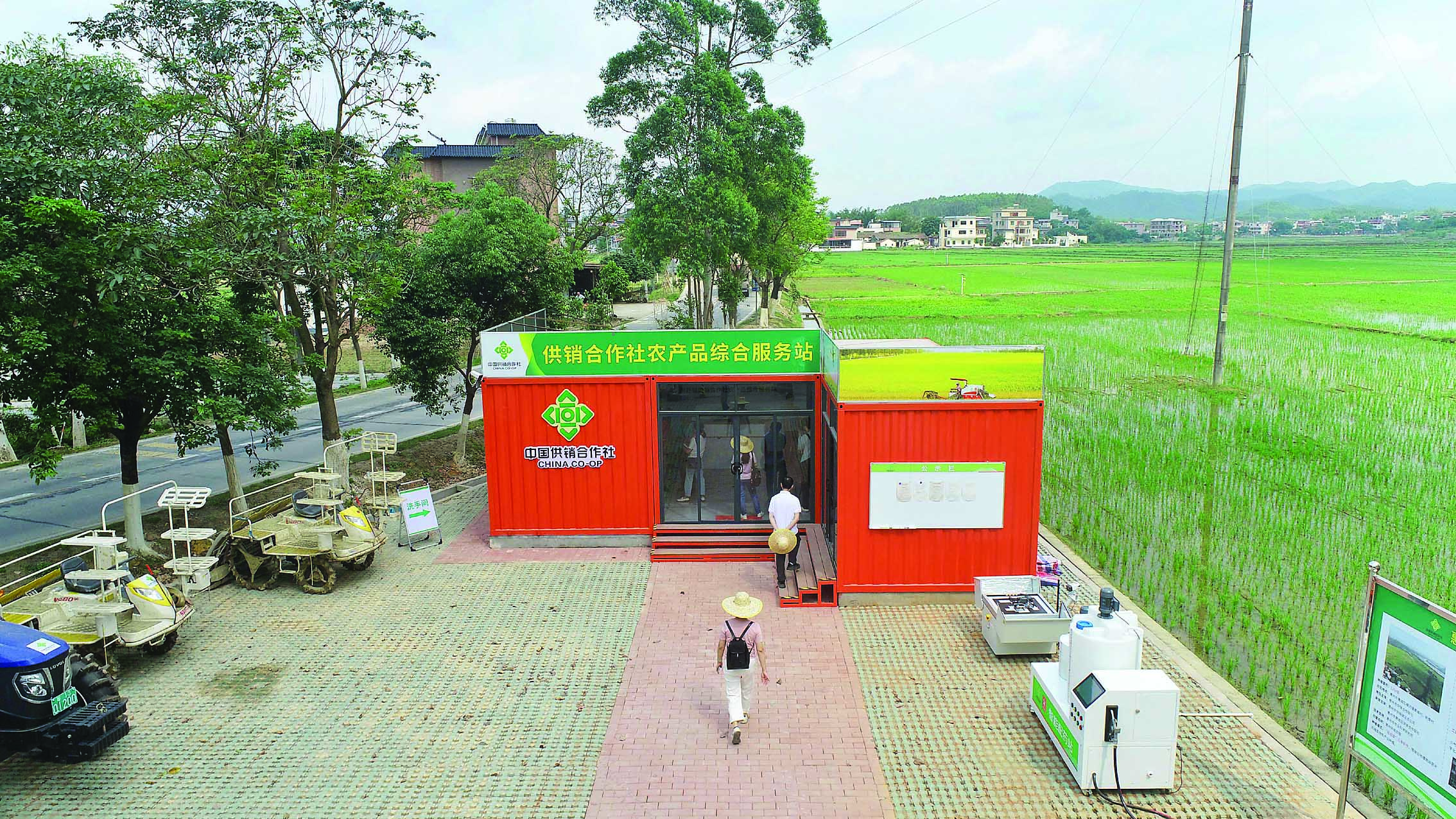 設(shè)在稻田邊上的橫瀝鎮(zhèn)供銷合作社農(nóng)產(chǎn)品綜合服務(wù)站。 惠州日報記者楊建業(yè) 攝