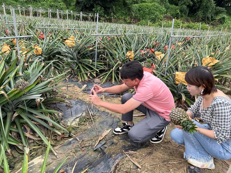 橫瀝鎮(zhèn)參訓(xùn)學(xué)員高遠(yuǎn)輝家中種了鳳梨,他表示培訓(xùn)讓自己收獲滿滿,“這次培訓(xùn)實(shí)操安排去博羅的鳳梨基地拍攝,就像為我量身定做,老師手把手教怎么拍攝剪輯視頻,太感謝主辦方和授課老師了。”