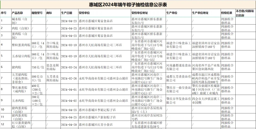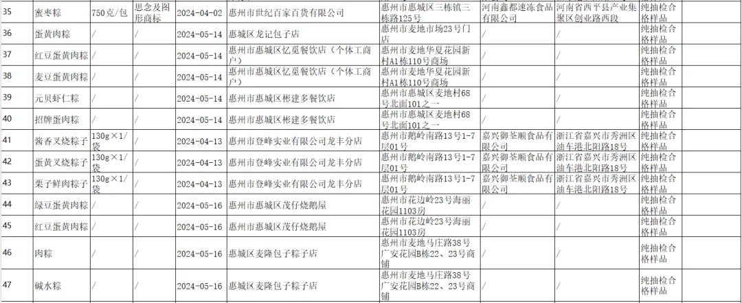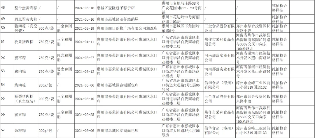 抽檢過程中,工作人員依據(jù)GB 2760-2014《食品安全國家標(biāo)準(zhǔn) 食品添加劑使用標(biāo)準(zhǔn)》、GB 29921-2021《食品安全國家標(biāo)準(zhǔn) 預(yù)包裝食品中致病菌限量》、SB/T 10377-2004《粽子》、GB 19295-2021《食品安全國家標(biāo)準(zhǔn) 速凍面米與調(diào)制食品》等標(biāo)準(zhǔn)的要求,對樣品的山梨酸及其鉀鹽、脫氫乙酸及其鈉鹽、糖精鈉、安賽蜜、甜蜜素、過氧化值、商業(yè)無菌、金黃色葡萄球菌、沙門氏菌、大腸菌群、菌落總數(shù)、霉菌等指標(biāo)進行了檢驗,結(jié)果顯示,60件樣品全部符合相關(guān)食品安全標(biāo)準(zhǔn),監(jiān)督抽檢合格率為100%。