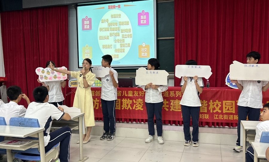 惠州日?qǐng)?bào)訊 (記者彭紅霞 通訊員朱彩霞)為提升轄區(qū)學(xué)生的法治素養(yǎng)、安全防范意識(shí)和自我保護(hù)能力,預(yù)防校園欺凌和霸凌事件,構(gòu)建平安和諧校園,日前,惠城區(qū)江北街道婦聯(lián)聯(lián)合新城社區(qū)黨委在惠州市知行學(xué)校舉辦“預(yù)防校園欺凌 共建和諧校園”主題講座,邀請(qǐng)惠州市婦聯(lián)家庭教育講師黃云菲擔(dān)任主講,為該校初一、初二年級(jí)約150名學(xué)生上了一堂生動(dòng)的課。