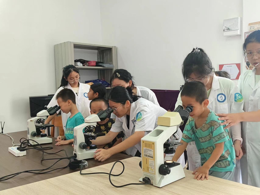 “這就是蛔蟲卵啊,以后我飯前便后一定要好好洗手!”在健康文化課程中,孩子們首次通過顯微鏡觀察了蛔蟲卵,深刻理解了個人衛(wèi)生的重要性。來自惠州衛(wèi)生職業(yè)技術學院的志愿者巧妙結合理論與實踐,讓孩子們在操作中學習,寓教于樂。據(jù)培訓班負責人介紹,相較往年,今年課程更豐富,引入不同類型的青年大學生突擊隊力量,填補了孩子們知識的空白區(qū)域。