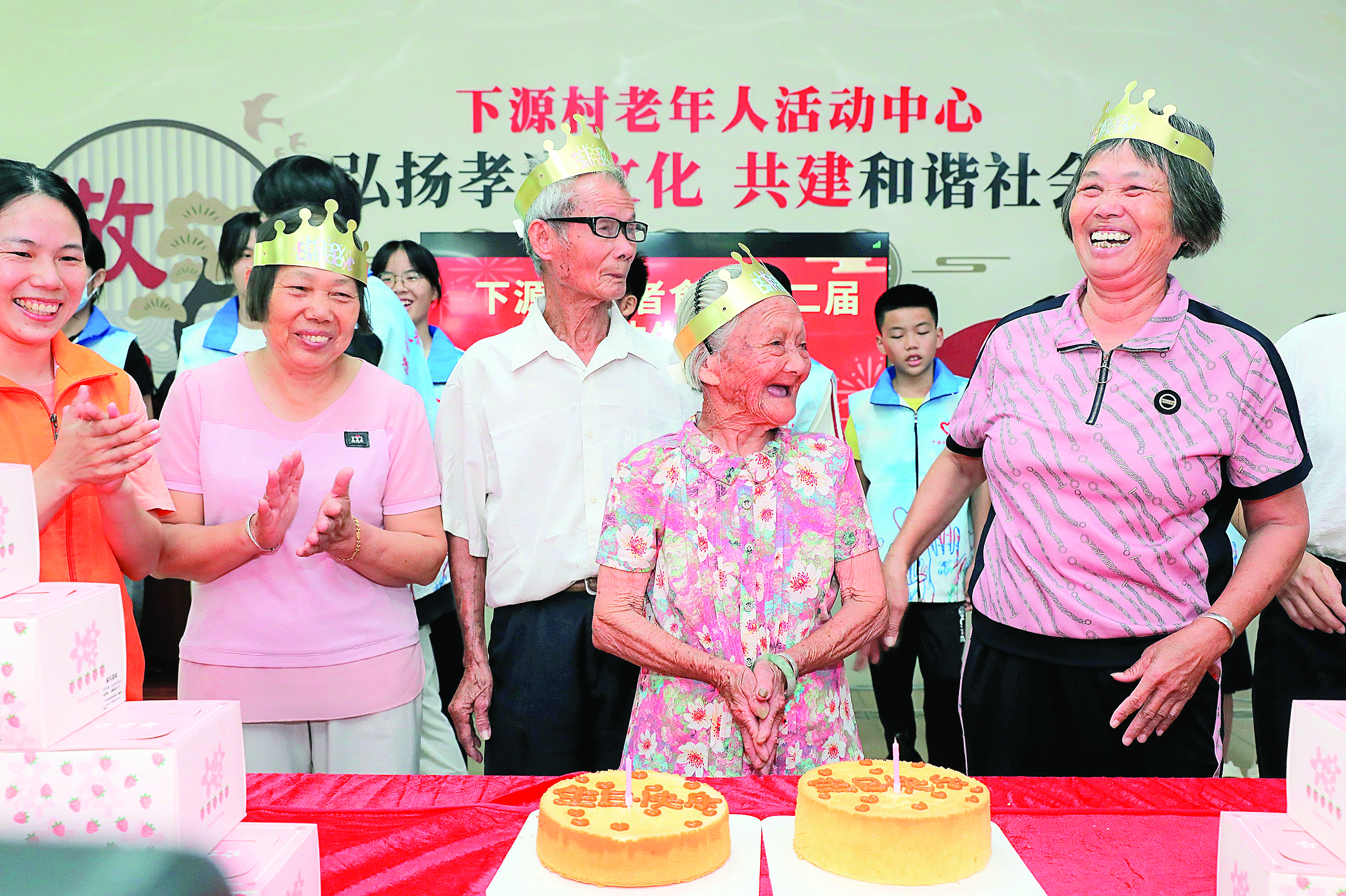 心系長(zhǎng)者,共慶生辰。“跟大家一起過(guò)我的99歲生日,好開(kāi)心!”日前,惠城區(qū)水口街道下源村老人陳招妹度過(guò)了一個(gè)難忘的生日,在村里的長(zhǎng)者食堂,她跟24位60歲以上老人一起參加“時(shí)光盛宴”——第二屆長(zhǎng)者集體生日會(huì)。村里青少年志愿者共同為老人唱響生日快樂(lè)歌,25位壽星笑逐顏開(kāi)、其樂(lè)融融……