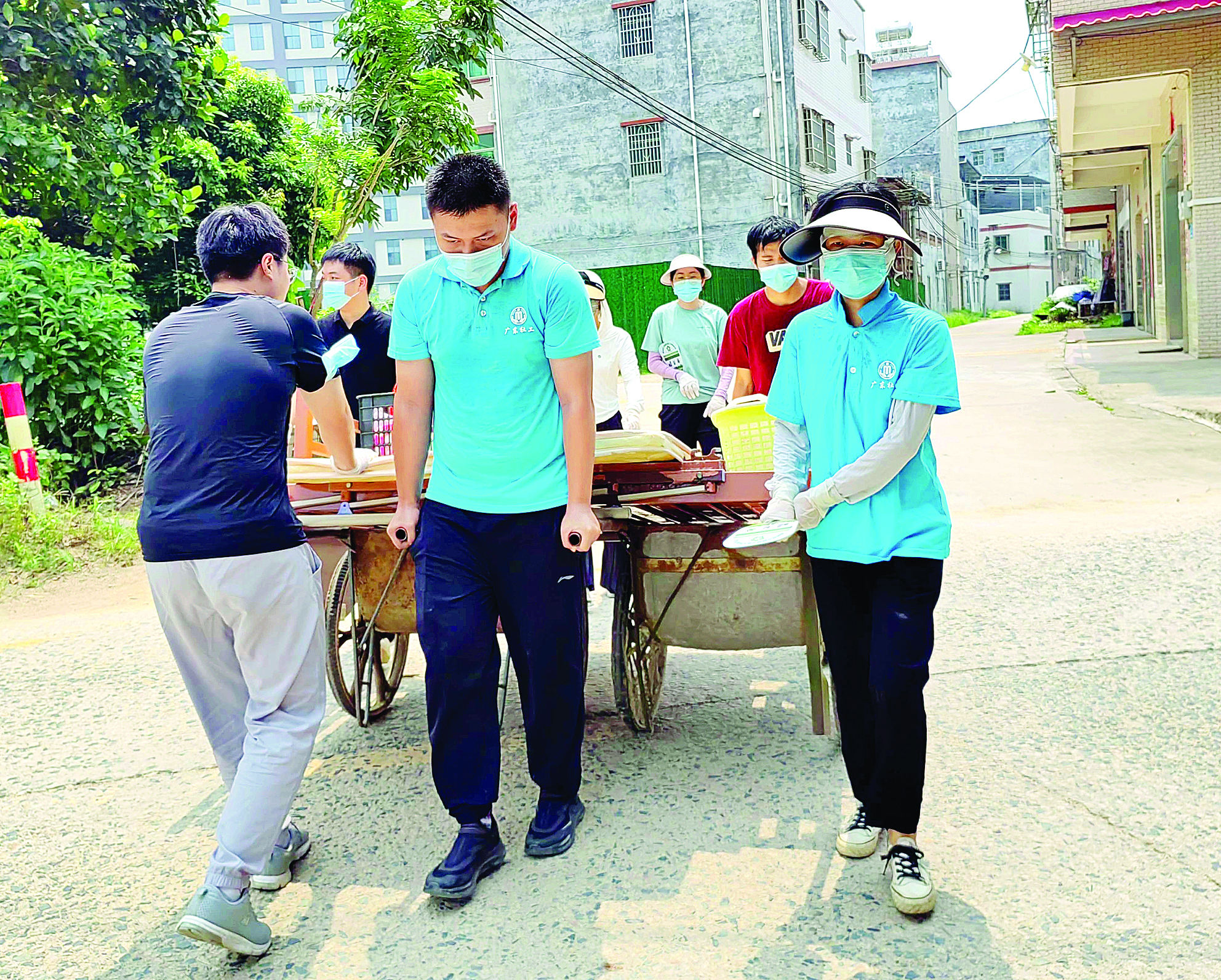 社工和志愿者幫張叔搬家。