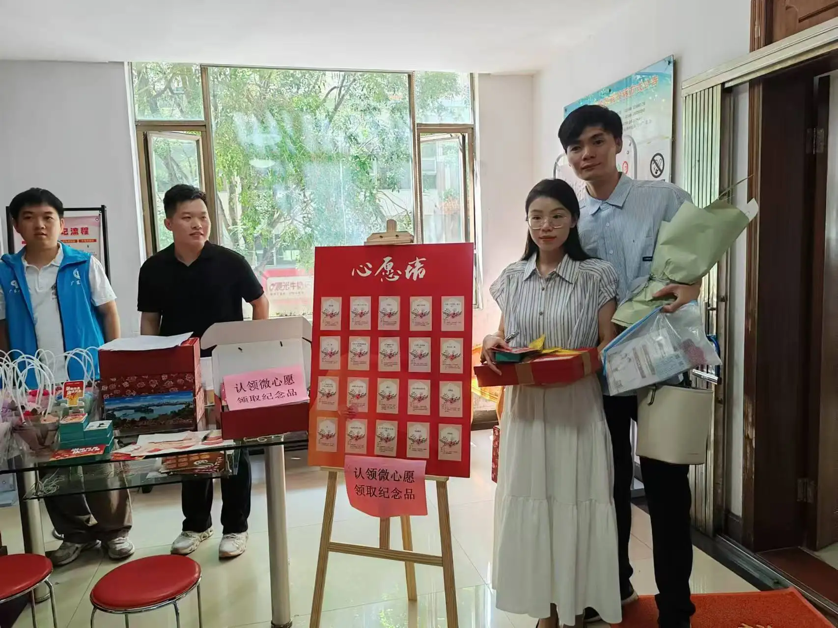 9時30分,記者來到了惠城區(qū)民政局婚姻登記處,現(xiàn)場已有不少正在辦理登記手續(xù)的新人。市民政局工作人員、社工在現(xiàn)場擺起了小攤,支起“微心愿”愛心墻,把慈善文化融入婚姻登記服務(wù)過程。民政部門準(zhǔn)備寓意“一輩子”的喜慶杯子、花藝小品等小禮物,每對參與的新人在捐贈后會收到一份捐贈禮品。