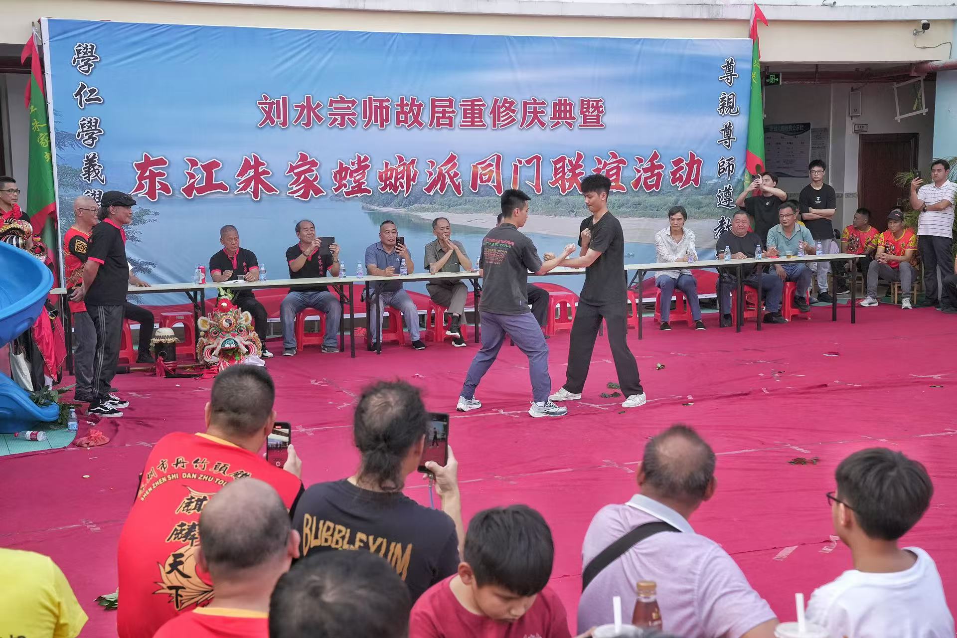 惠州日報訊 (記者彭紅霞 特約通訊員廖詠琳 通訊員林健)11月3日下午,惠城區(qū)蘆洲鎮(zhèn)香園村鑼鼓喧天,首屆東江朱家螳螂派傳承交流活動在此舉行。來自香港、深圳、東莞各地的朱家螳螂派弟子齊聚一堂,以麒麟獻(xiàn)禮、用拳術(shù)交流,共同慶祝宗師劉水故居修繕一新,傳承和弘揚朱家螳螂派。