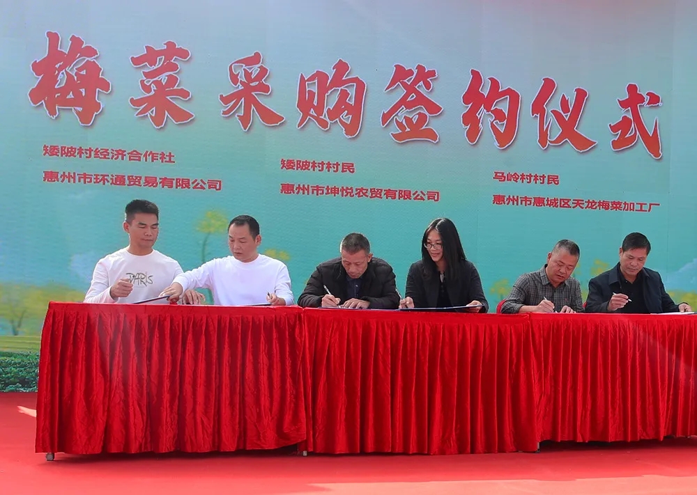 產(chǎn)業(yè)的發(fā)展離不開(kāi)產(chǎn)銷(xiāo)結(jié)合。活動(dòng)中,矮陂村經(jīng)濟(jì)合作社與惠州市環(huán)通貿(mào)易有限公司、矮陂村村民代表與惠州市坤悅農(nóng)貿(mào)有限公司、馬嶺村村民代表與惠州市惠城區(qū)天龍梅菜加工場(chǎng)分別簽訂梅菜采購(gòu)協(xié)議,大力推動(dòng)種植戶與梅菜企業(yè)、農(nóng)民合作社與種植企業(yè)合作,進(jìn)一步保障梅菜品質(zhì),規(guī)范生產(chǎn)標(biāo)準(zhǔn),拓寬梅菜銷(xiāo)售渠道。
