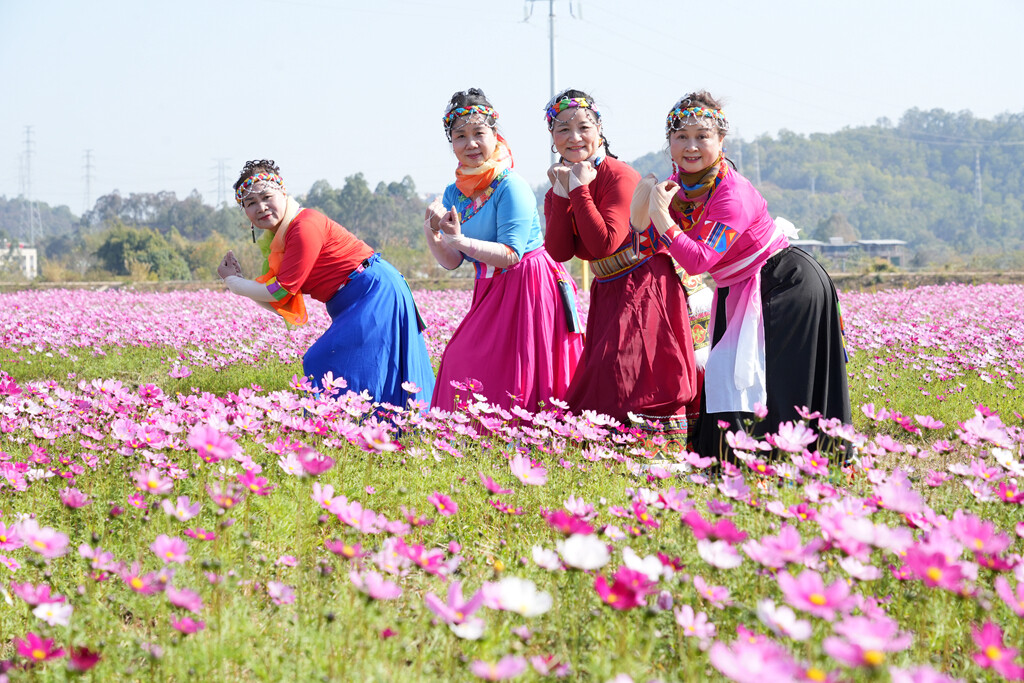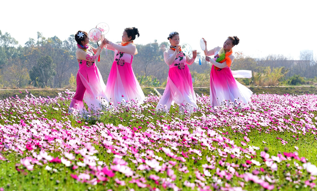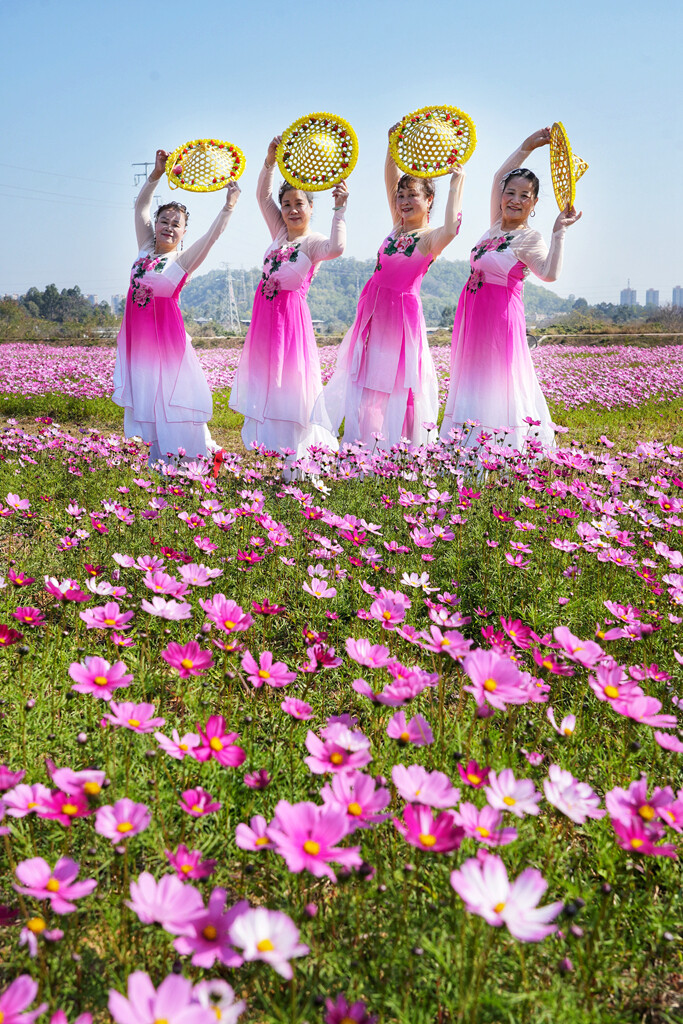 1月18日,在惠州市惠城區(qū)小金河大道路邊,有30畝格桑花正在盛放,在陽光的照耀下,朵朵格桑花迎風(fēng)搖曳,就像一片粉紅色的海洋,而蝴蝶和蜜蜂則在這片花海中穿梭忙碌著,還有愛好舞蹈的人士在這里翩翩起舞,盡情地享受著這難得的盛宴。