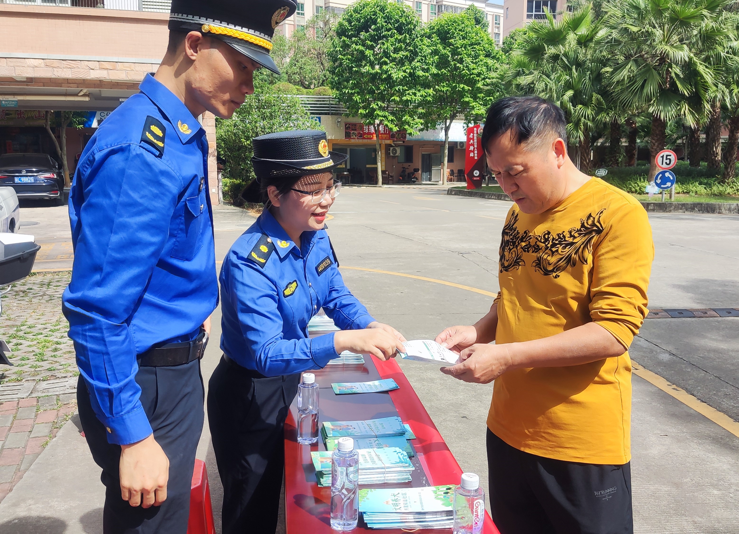執(zhí)法人員進社區(qū)開展文明養(yǎng)犬宣傳。