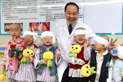 王豪與聽(tīng)障手術(shù)兒童。